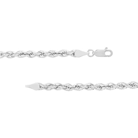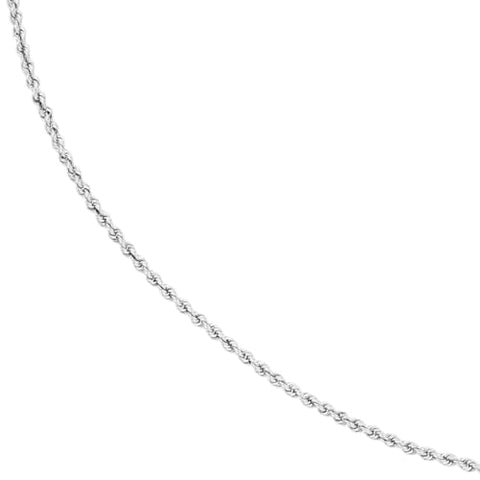 The twist of this rope chain will leave you charmed every time you wear it. This chain measures 4mm wide and secures with a lobster clasp. Lighter weight 20inch length but all 14k white gold.