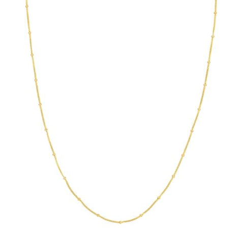 This saturn curb chain features delicate bead elements. A unique, modern chain that will become a staple in your wardrobe. The chain has a lobster clasp and is 18 inches in length.