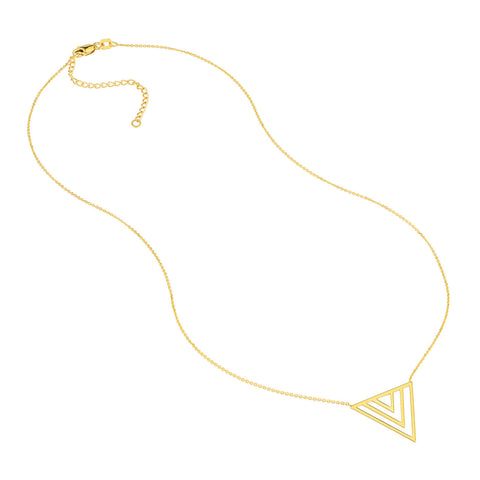 14k Yellow Gold Trio V Triangle Geometric Necklace Adjustable Length