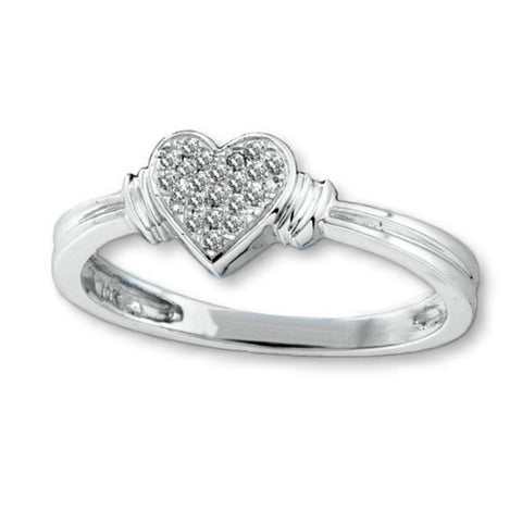 Genuine Diamond Micro Pave Heart Ring Rhodium on Sterling Silver - Nontarnish