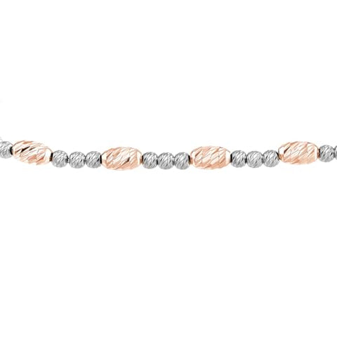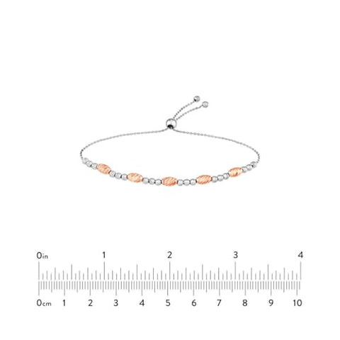 Bolo Bracelet with Diamond-cut Beads Rose Gold and Rhodium on Sterling Silver