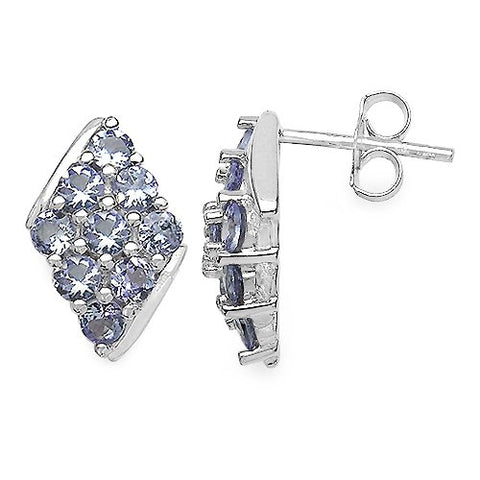 The newest December birthstone! These spectacular stud earrings are designed to dazzle; no matter what else you wear! They feature a total of eighteen stones (9 on each earring) of natural, heat-treated tanzanite, with a total weight of 1.80 carats. The earring settings are made of .925 sterling silver with rhodium plating.