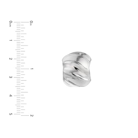 Rhodium-plated sterling silver wide huggie hoop earrings will make a wave! Artform designer style, the earrings 14mm wide with a drop length of 25mm. ABOUT RHODIUM FINISH: A rhodium finish is plated over other metals to make it non-tarnish, and is a hard-wearing, scratch resistant metal.