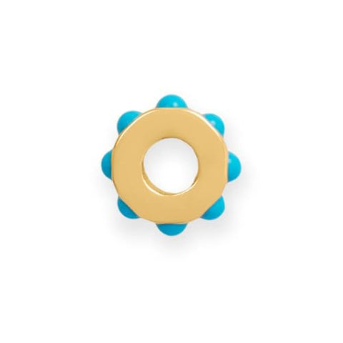 Perfect for stacking and studded with gemstones! Wheel bead slide-on charm has eight imitation turquoise beads all around the outside. The charm is 9x2.5mm and the inside hole will fit up to 4mm chains.